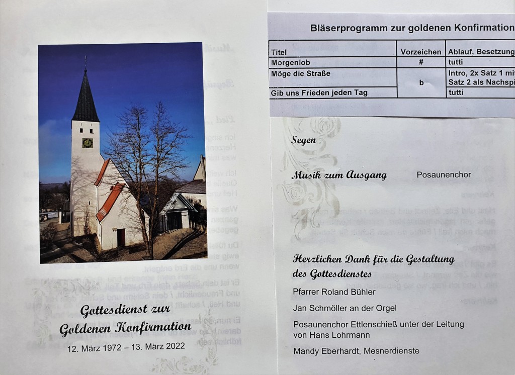 Am 13. März war es eine Ehrensache, die goldenen Konfirmation des Jahrgangs 1958 musikalisch mit zu gestalten, denn sage und schreibe 4 der JubilarInnen waren schon bei den Jungbläsern 1971 vertreten und sind teilweise immer noch aktiv – darunter auch unsere unverwüstliche Flügelhornisse Hilde Scheible.