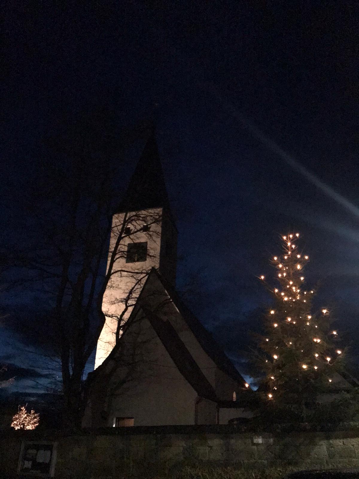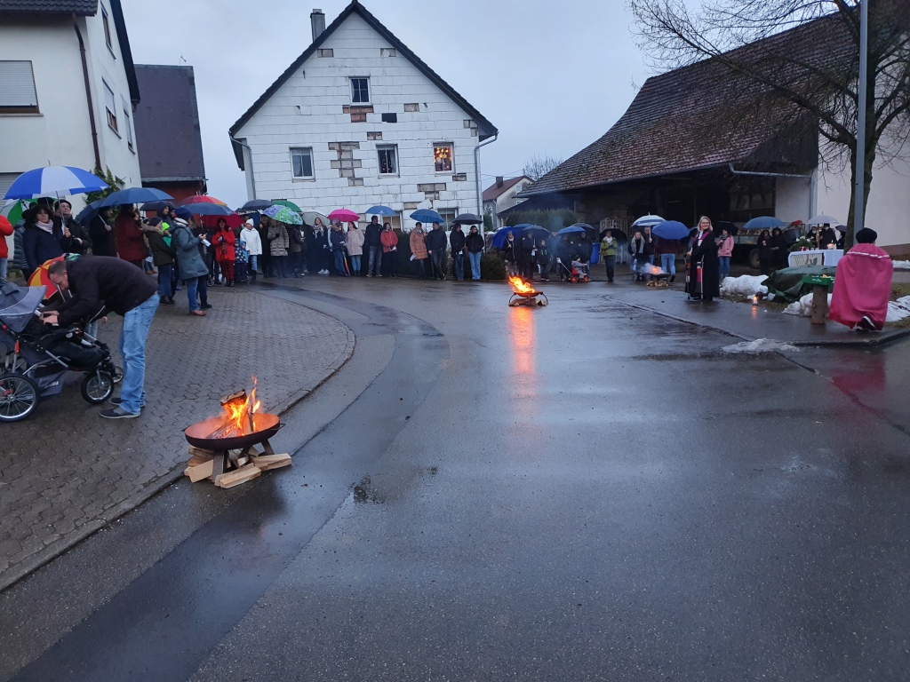 Erneut wurde die Christmette ‚der obwaltenden Umstände halber‘ ins Freie verlegt und heuer von Pfarrerin Daniela Milz-Ramming auf dem Lindenplatz zelebriert.