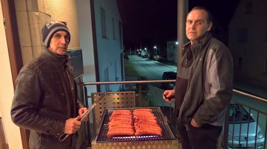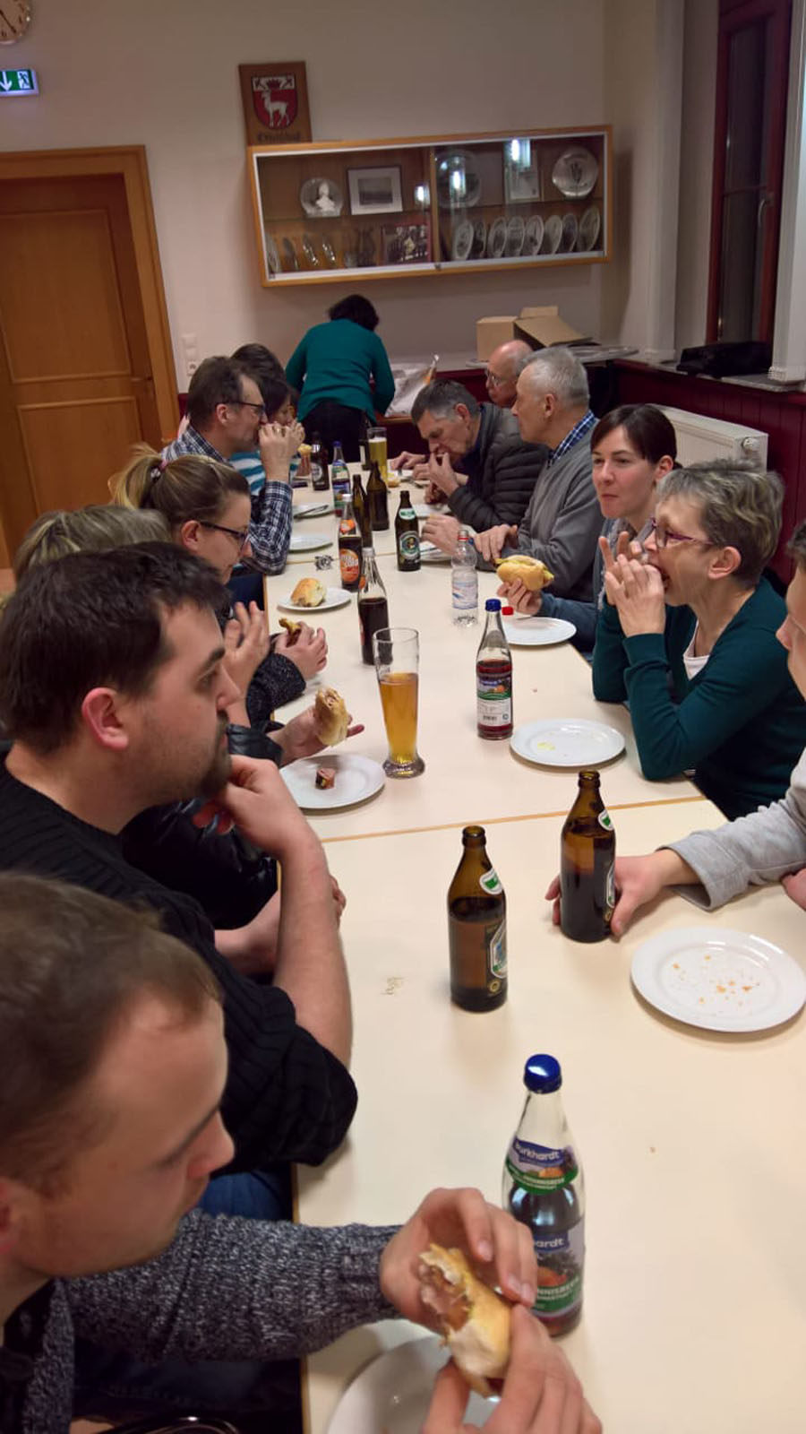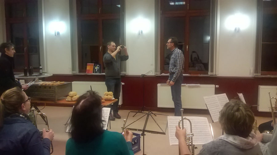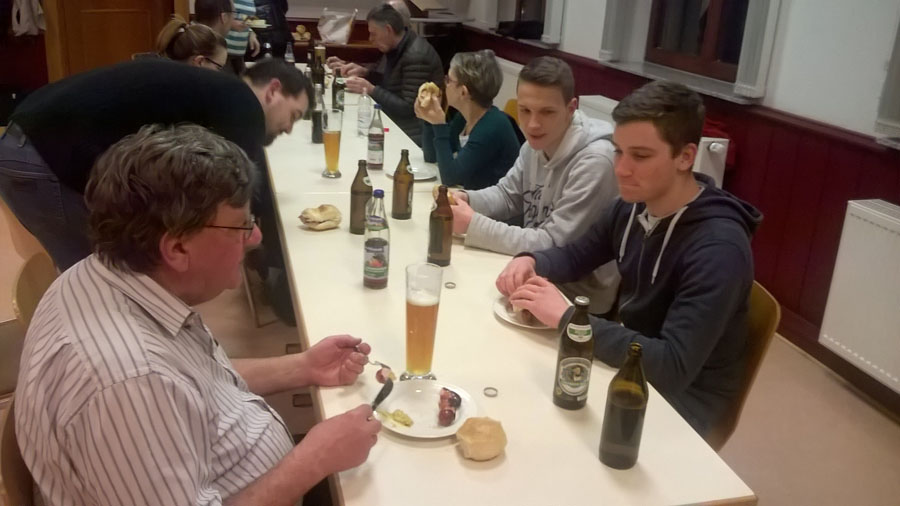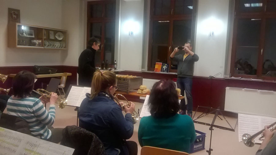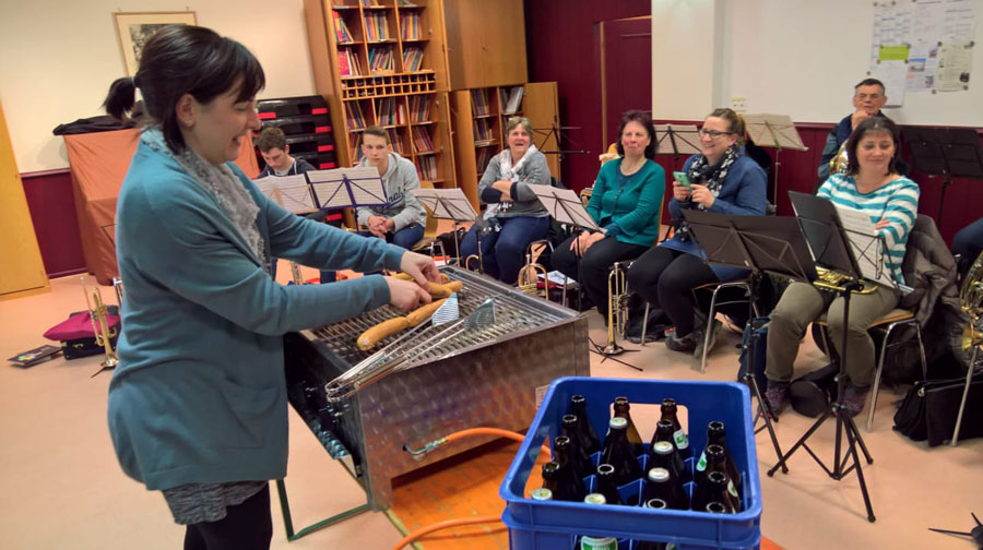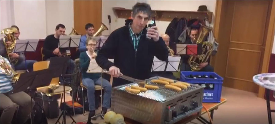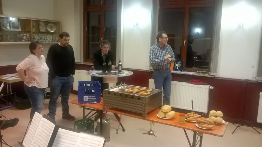 Vor eine Herausforderung (Challenge) stellte uns die Feuerwehr: Ein stilechtes Wintergrillen sollten wir abhalten und per Video dokumentieren, binnen sieben Tagen – andernfalls müssten wir den Herausforderern bei ihrem Fest am 1. August den Marsch blasen. Auch eine verlockende Aussicht, aber wir bevorzugten doch die Option mit dem feinen Essen. Und so schritten wir nach der Probe am 8. März zur Tat. Minutiös vorbereitet durch einige unserer Rentner und deren Hilfspersonal, bannten wir nicht nur ein Wintergrillen auf Video, das eines Posaunenchors würdig ist, sondern ließen es uns auch von Herzen schmecken.