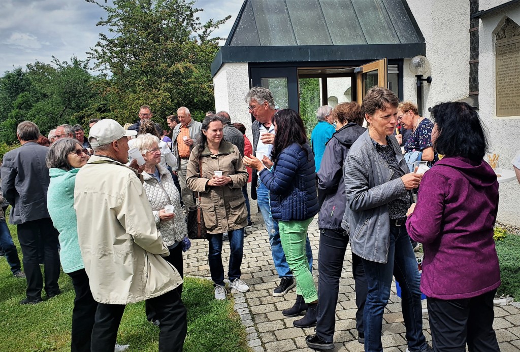Der ‚Gottesdienst im Grünen‘ musste leider – dem Ungewitter geschuldet – wieder einmal Zuflucht in der Georgskirche suchen, was aber unserer Musizierfreude keinen Abbruch tat und so durften wir uns beim anschließenden Ständerling – selbstverständlich in strahlendem Sonnenschein – über zahlreiche anerkennende Worte der Besucher freuen.