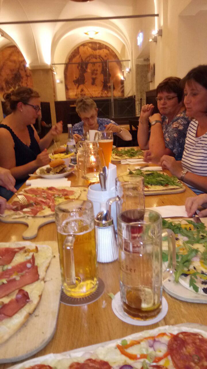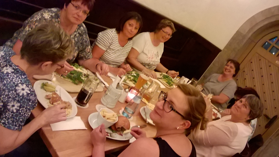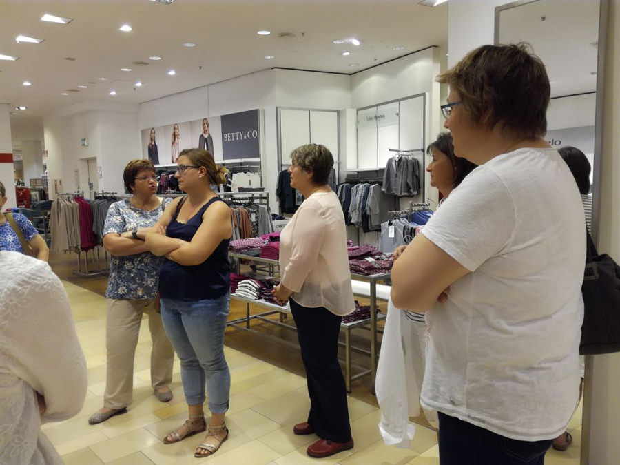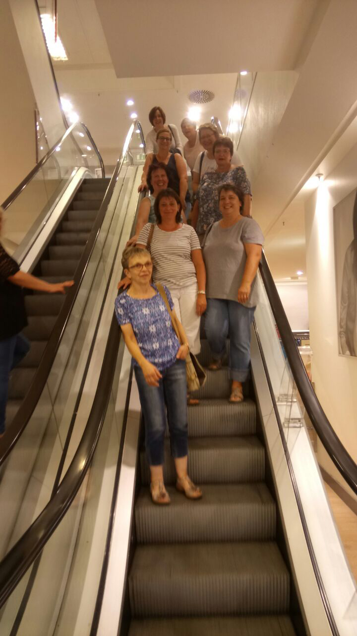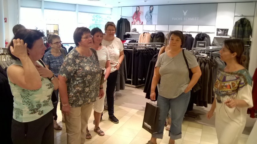 Quasi noch in der Nacht nach der letzten Ausschuss-Sitzung war die WhatsApp-Gruppe „Shopping Queens vom PCE“ gegründet und ein Termin für das gemeinsame Aussuchen einer neuen Uniformbluse gemacht worden. So zogen dann am gefühlt heißesten Donnerstagabend des Jahres neun Frauen durch Ulm, die auf der Suche nach einer Bluse in mindestens zehn verschiedenen Konfektionsgrößen sechs Läden durchkämmten. Am Ende wollten wir eigentlich nur noch kurz klären, welche Größen wir vom Modell im ersten Laden theoretisch brauchen würden, wenn wir uns nicht für einen (zwischendurch geschmiedeten) Plan A entscheiden könnten – kehrten zurück in den Laden Nummer eins und waren dank einer wiefen Verkäuferin völlig unverhofft alle Sorgen auf einen Schlag los.