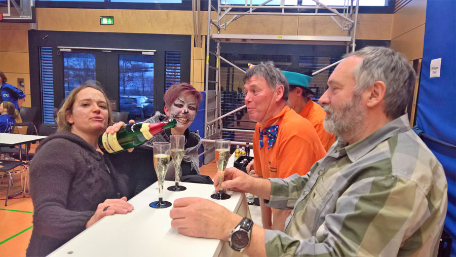 Dass wir auch die Narretei beherrschen, zeigte der Einsatz beim Kinderfasching in Lonsee. Mit einem tüchtigen Team schmissen wir das Fasnetswochenende von Auf- bis Abbau und bewirteten die rund 500 großen und kleinen Gäste in der Mühlbachhalle – trotzdem es für uns eine absolute Premiere war – erfolgreich und natürlich dem Anlass angemessen narrat.