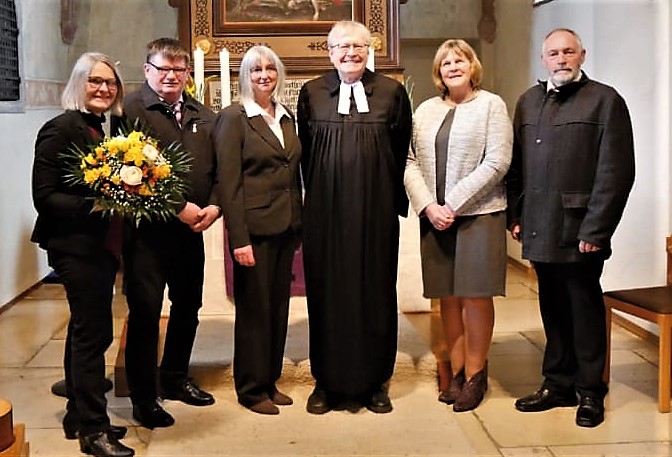 Zusammen mit dem ‚Duo Pastorale‘ (Pfarrerin Daniela Milz-Ramming, Gesang; Pfarrer Roland Bühler, Gitarre) und Jan Schmöller, der die Orgel ’schlug‘, ließen wir es uns nicht nehmen, den verblüffend jugendlichen Erscheinungen bei ihrem Festgottesdienst mit allem Brimborium musikalisch zu gratulieren:
