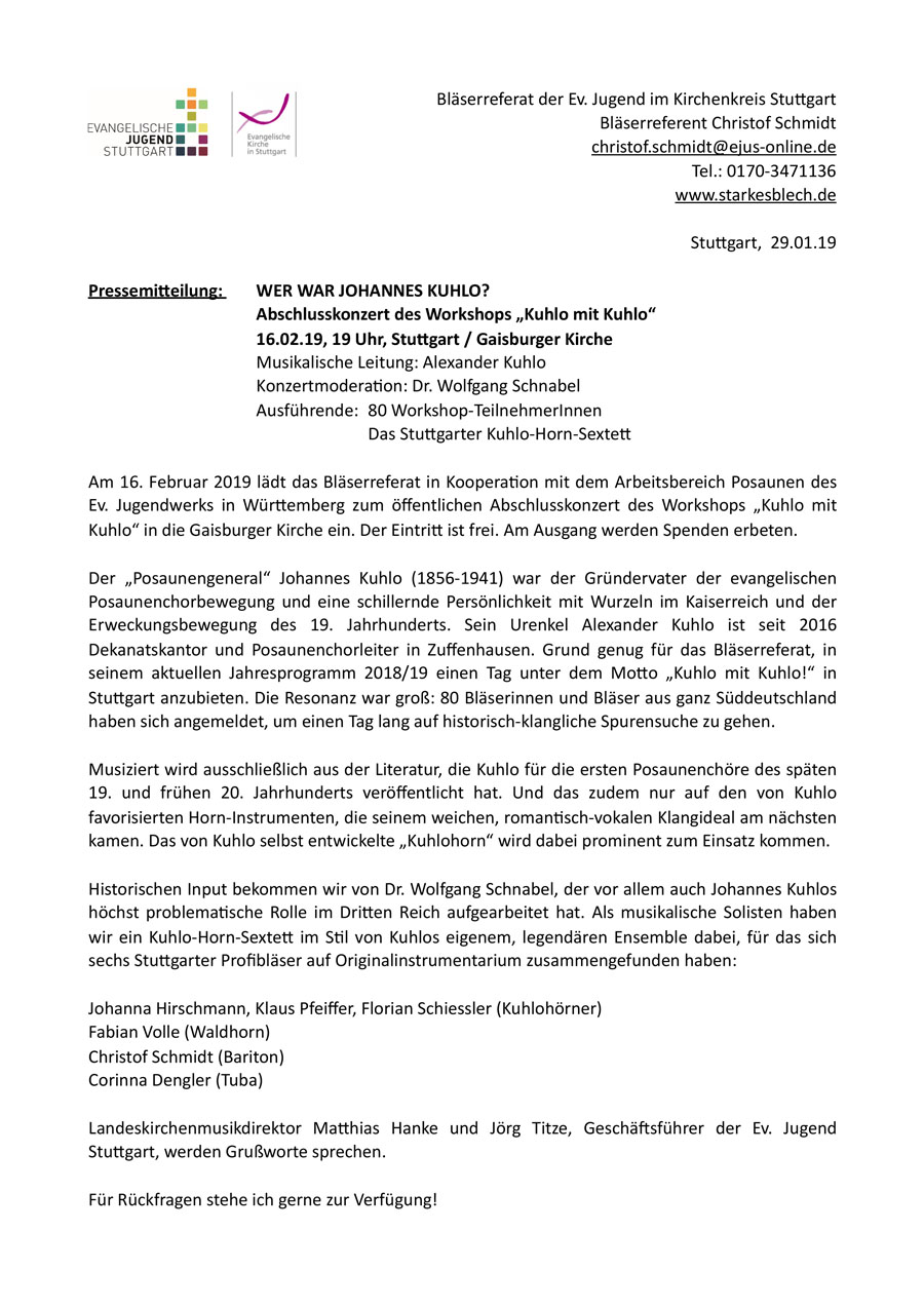 Wer war Johannes Kuhlo, der Gründervater der Posaunenbewegung? Um dies zu ergründen, machte sich eine geschwisterliche Abordnung unseres Chors auf zum Workshop in Schturgert. Dort kamen sie in den Genuss eines historischen Vortrags, trafen Zeitzeugen und erfuhren erstaunliche Details über den ‚Posaunengeneral‘.