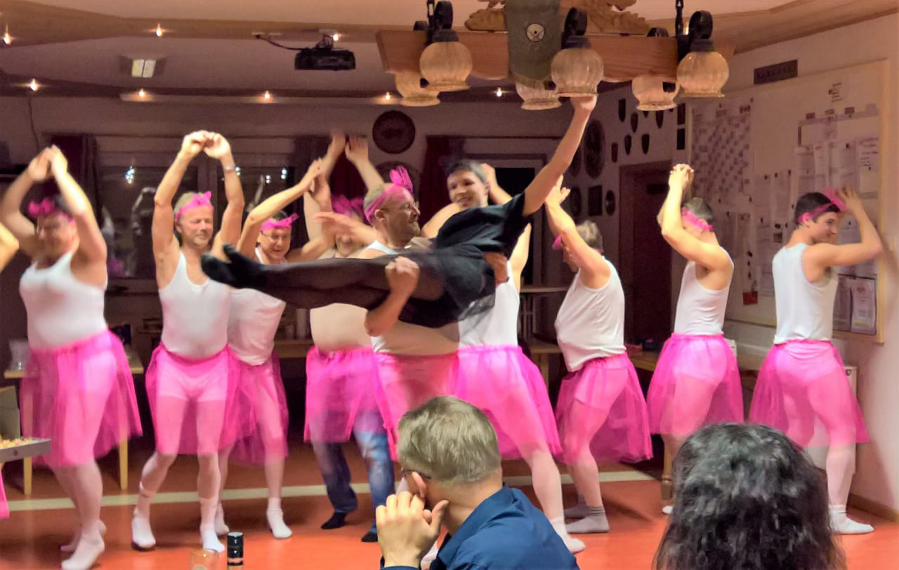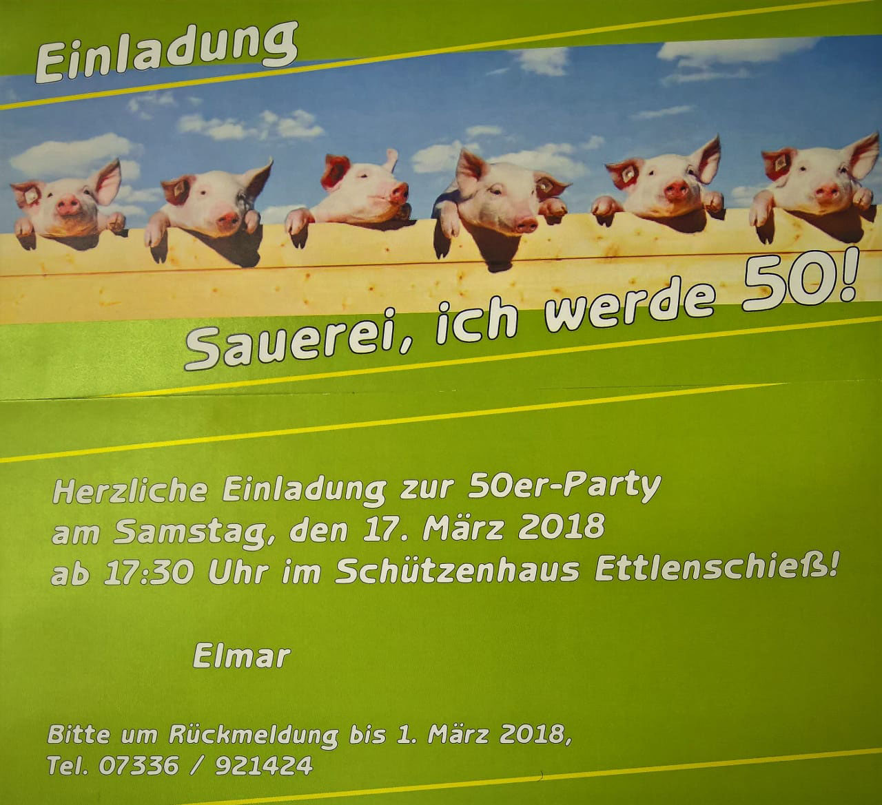 Unsere Hoffnungen wurden nicht enttäuscht: Speis und Trank, Musik und Tanz gerieten vortrefflich. Nicht zu vergessen die Laudatio unseres Vorstandes Horst – der auch das passend schweinische Geschenk überreichte – und der Streifzug durch die Chronik von und mit Schriftführerin Silke. (Schier unglaublich, an was sich jüngere Schwestern so alles erinnern.)